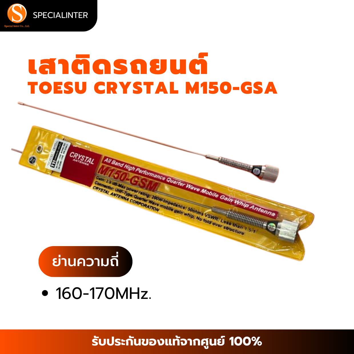 เสาอากาศติดรถยนต์คุณภาพสูง รุ่น TOESU CRYSTAL ออกแบบมาสำหรับวิทยุสื่อสารย่านความถี่ 150-160 MHz เพื่อเพิ่มประสิทธิภาพในการรับ-ส่งสัญญาณ ติดตั้งง่าย สัญญาณแรง ขั้ว PL-259 (มาตรฐาน)รูปแบบใช้ได้ทั้งเม้าท์แม่เหล็ก และขายึดเสาติดรถ